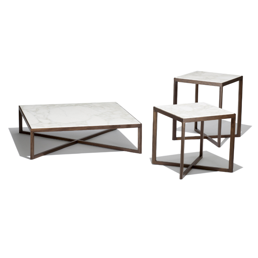 Marc Krusin: “The tables were part of the same development as the chairs. The chairs really inspired them in a way, inspired the detailing within that cube. The main structure is all being made in the USA, by a great bunch of guys who were so flexible throughout the whole design process — so fast and extremely talented. They were always available to make all the petty modifications that, between myself and Bejamin Pardo, the Design Direction, were thrown at them.